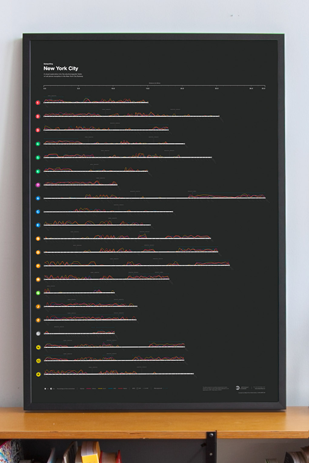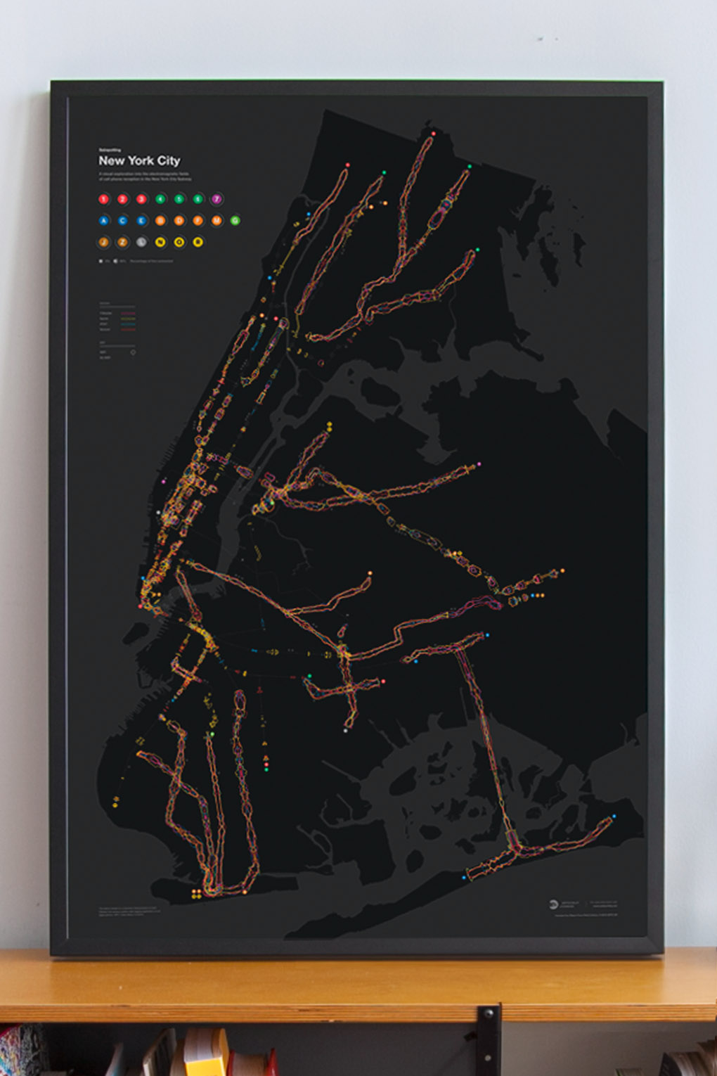 The Subspotting posters are beautiful visual representations of the Subspotting project and its collected data along all 660 miles of the New York City Subway.